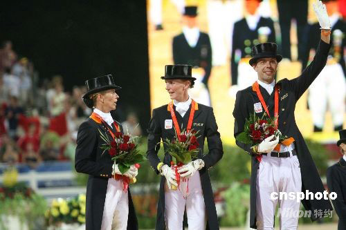荷蘭隊(duì)獲得奧運(yùn)馬術(shù)盛裝舞步團(tuán)體賽銀牌。中新社發(fā) 洪少葵 攝
