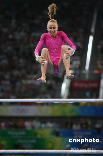 8月15日,北京奧運(yùn)會(huì)體操女子個(gè)人全能決賽,美國(guó)選手娜斯佳·柳金以63.325總分獲得金牌。中新社發(fā) 武仲林 攝