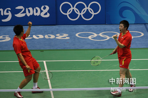 8月15日晚,中國組合杜婧、于洋在北京奧運會羽毛球女子雙打決賽中以2比0戰(zhàn)勝韓國組合李孝貞、李敬元,奪得金牌。中新社記者 武仲林 攝