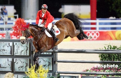 圖:奧運馬術(shù)選手李振強跨躍障礙