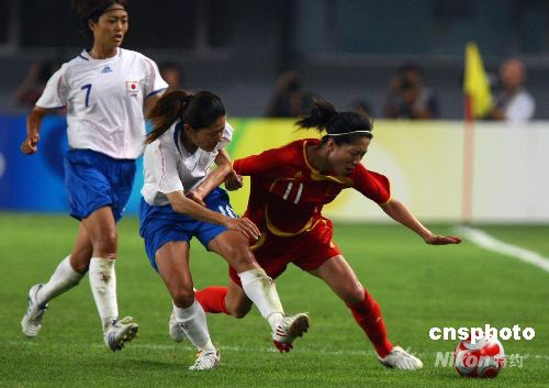 8月15日晚,北京奧運(yùn)會女子足球1/4決賽,中國對日本的比賽在秦皇島奧體中心舉行,最終中國隊(duì)0:2負(fù)于日本隊(duì),失去進(jìn)入四強(qiáng)的機(jī)會。中新社發(fā) 劉新 攝