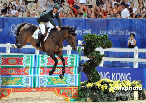八月十五日晚,奧運馬術(shù)在香港沙田舉行場地障礙個人賽及團(tuán)體賽的第一輪資格賽。雅典奧運金牌得主巴西選手羅德里戈·佩索阿與坐騎“魯弗斯”在地障礙賽上登場。中新社發(fā) 鄧慶樂 攝