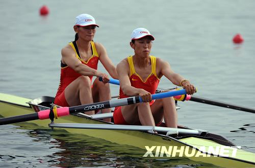 8月16日,中國選手吳優(yōu)/高玉蘭在順義奧林匹克水上公園進行的北京奧運會賽艇女子雙人單槳A組決賽中奪得亞軍。新華社記者王雷攝