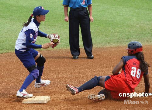 8月16日,在北京奧運壘球賽中,中華臺北隊對戰(zhàn)美國隊,結(jié)果以0比7大比分敗給對手。中新社發(fā) CNAsports 攝