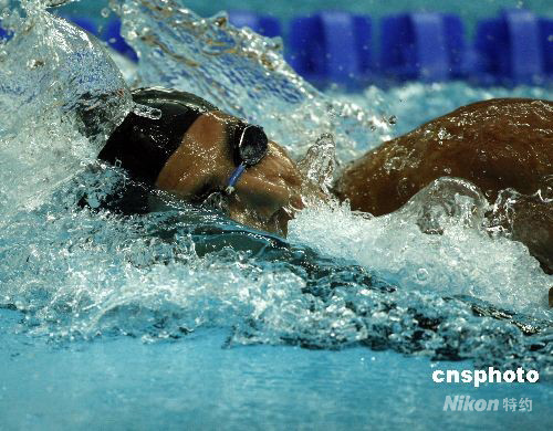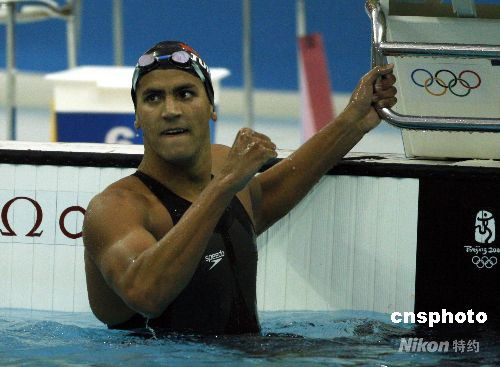 8月17日,北京奧運(yùn)會男子1500米自由泳決賽中,來自突尼斯的邁盧利擊敗澳大利亞名將哈克特,以14分40秒84獲得金牌。 這是突尼斯從1960年第一次參加奧運(yùn)會以來獲得的第一枚奧運(yùn)會游泳金牌。 中新社發(fā) 杜洋 攝