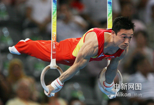 8月18日,中國(guó)選手楊威在北京奧運(yùn)會(huì)吊環(huán)決賽中表現(xiàn)出色,奪得銀牌。中新社記者 武仲林 攝
