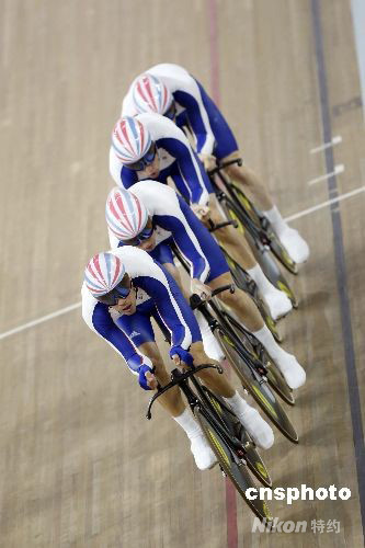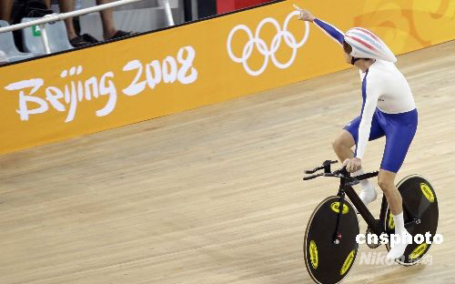 8月18日,北京奧運會場地自行車男子4公里團體追逐賽決賽在老山自行車館舉行,英國隊以3分53秒314的成績獲得金牌,打破世界紀(jì)錄。 中新社發(fā) 盛佳鵬 攝