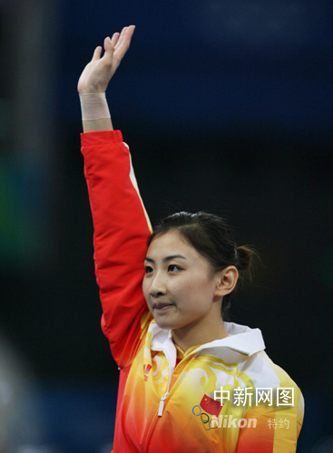 8月18日,中國選手何雯娜在北京奧運(yùn)會(huì)女子蹦床比賽中奪得冠軍。中新社記者 武仲林 攝