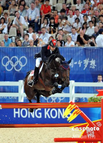 八月十八日晚,奧運(yùn)馬術(shù)場(chǎng)地障礙賽團(tuán)體賽決賽(第二輪)及個(gè)人賽(第三輪資格賽)在香港沙田賽場(chǎng)舉行,圖為唯一進(jìn)入個(gè)人賽(第三輪資格賽)的中國(guó)香港選手林立信策騎“城市”單騎應(yīng)戰(zhàn)。中新社發(fā) 鄧慶樂(lè) 攝