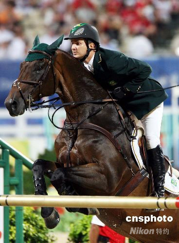 圖:巴西選手阿爾維斯馬術(shù)場地障礙賽表現(xiàn)不俗