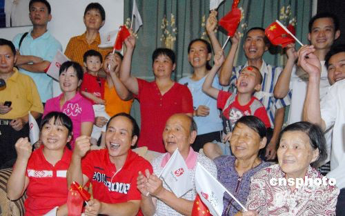 18日晚,何雯娜父母及親戚朋友在福建龍巖家中為女兒加油助威。在當晚舉行的北京奧運會女子蹦床決賽中,年僅19歲的客家姑娘何雯娜成功奪魁,為中國奪得奧運歷史上首枚蹦床金牌。