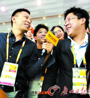 在水立方,霍啟剛接受了搜狐CEO張朝陽的訪問。(圖片來源:廣州日報(bào))