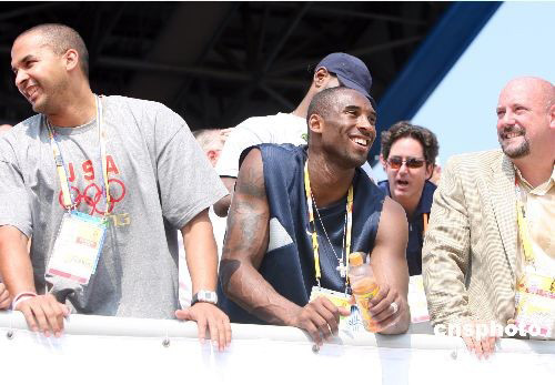 8月19日,美國籃球巨星科比前往奧運沙灘排球現(xiàn)場,為美國選手加油。 中新社發(fā) 武仲林 攝