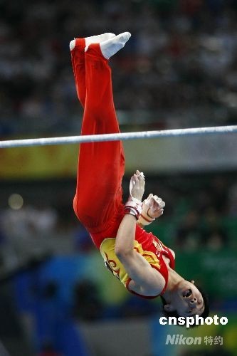 圖:鄒凱奪得奧運(yùn)會(huì)體操男子單杠金牌 (2)