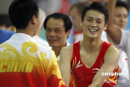 8月19日,中國選手陸春龍奪得北京奧運(yùn)會(huì)男子蹦床金牌。中新社發(fā) 盛佳鵬 攝