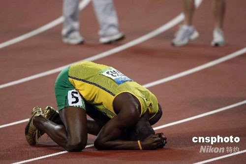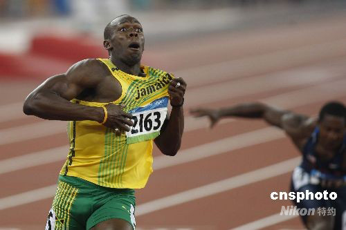 8月20日晚,即將于8月21日迎來22歲生日的牙買加選手尤塞恩·博爾特,在國家體育場“鳥巢”再造神話,在北京奧運(yùn)會(huì)男子200米決賽中,以19秒30獲得金牌,并打破約翰遜保持12年之久的19秒32的世界紀(jì)錄。這是繼博爾特16日晚以9秒69打破男子100米世界紀(jì)錄后,再一次在“鳥巢”創(chuàng)造奇跡。中新社發(fā) 盛佳鵬 攝