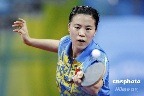 8月21日,北京奧運會乒乓球女子單打第四輪的比賽在北京大學(xué)體育館進(jìn)行,中國選手郭躍、王楠分別戰(zhàn)勝對手晉級下一輪比賽。中新社發(fā) 盛佳鵬 攝