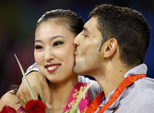 意大利選手奪金后情不自禁地親吻禮儀小姐,這讓中國MM多少有些尷尬。