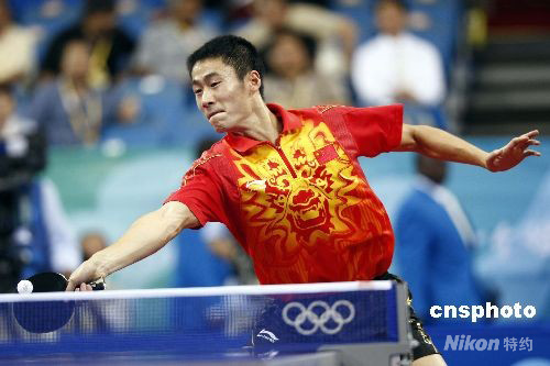 8月21日,北京奧運(yùn)會(huì)乒乓球男子單打第三輪的比賽在北京大學(xué)體育館進(jìn)行,中國選手王勵(lì)勤4比0戰(zhàn)勝波蘭選手盧希安·布拉什切克,晉級(jí)下一輪比賽。中新社發(fā) 盛佳鵬 攝