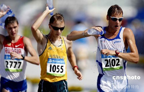 8月22日,北京奧運(yùn)會(huì)田徑比賽第八日,在男子50公里競走比賽中,意大利選手亞歷克斯-施瓦策以3小時(shí)37分09秒奪得冠軍。 中新社發(fā) 盛佳鵬 攝