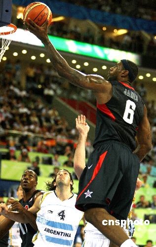 8月22日晚,北京奧運會男子籃球半決賽第二場比賽在五棵松籃球館開戰(zhàn),志在奪冠的美國“夢八隊”遭遇雅典奧運會冠軍阿根廷隊,最后以101比81獲勝,進入決賽。“夢八隊”將與西班牙隊爭奪本屆奧運會的男籃金牌。中新社發(fā) 任晨鳴 攝