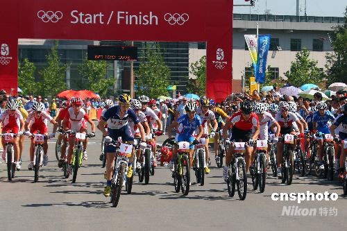 8月23日,北京奧運會自行車山地分項女子越野賽在北京老山山地自行車場舉行。德國選手扎比內(nèi)·施皮茨一路保持領(lǐng)先,最終以1小時45分11秒的成績順利摘金。波蘭選手馬婭·沃什佐夫斯卡獲得銀牌,俄羅斯選手伊琳娜·卡連季耶娃獲得銅牌。中國選手任成遠獲得了第5名,另一位中國選手劉穎最終獲得第12名。中新社發(fā) 盛佳鵬 攝