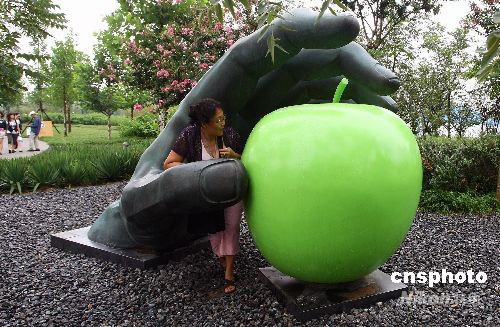 歷時16天的北京奧運(yùn)會即將閉幕,眾多游客抓緊最后的時間來到北京奧運(yùn)會主場館區(qū)——奧林匹克公園參觀游覽,共同感受奧運(yùn)氛圍。圖為一位女士被奧林匹克公園內(nèi)造型別致的雕塑吸引,與之“親密”合影。中新社發(fā) 劉新 攝