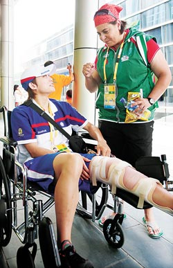 至于左膝韌帶受創(chuàng)的蘇麗文,為了替好友加油打氣,下午在陪練員幫忙下來(lái)到比賽現(xiàn)場(chǎng),但蘇麗文卻看到好友馬頓落敗的場(chǎng)面!艾F(xiàn)在每天都有接不完的電話,我根本無(wú)法好好休息,既如此,那我就干脆主動(dòng)到外面來(lái),讓所有人一次采訪完算了,其實(shí)我不想出名的。”蘇麗文以詼諧的語(yǔ)氣表示。