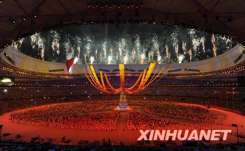 8月24日,2008年北京奧運(yùn)會在國家體育場——“鳥巢”隆重閉幕。圖為閉幕式上的表演。