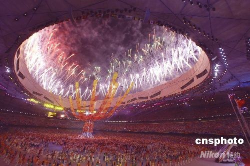 8月24日晚21時(shí)45分,北京奧運(yùn)會(huì)閉幕式在奧林匹克公園內(nèi)的國家體育場上空煙花映照下結(jié)束,經(jīng)歷了激烈鏖戰(zhàn)的世界各地運(yùn)動(dòng)員在“鳥巢”內(nèi)享受歡樂。