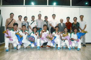 隨著北京奧運會閉幕,同期進行的“北京2008武術比賽”正式結束,代表澳門參與比賽的7位運動員及教練團成員,帶著世界最高規(guī)格的武術賽獎牌,25日晚8時返抵澳門國際機場。澳門武術總會副理事長李文欽、體育委員尹君樂到場迎接。