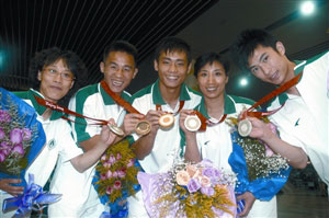 中新網8月26日電 據(jù)澳門日報報道,赴京參與“北京2008武術比賽”的澳門武術隊成員,共為澳門拿下一金三銀一銅的佳績,并在25日晚凱旋榮歸。