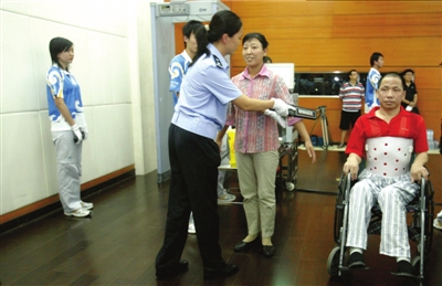 警方相關(guān)負(fù)責(zé)人表示,對(duì)于殘疾人,安檢員將優(yōu)先服務(wù)、專人引導(dǎo),確保殘疾人以最快速度通過安檢。拒絕接受安檢的殘疾人,按照相關(guān)規(guī)定,將被拒絕進(jìn)入場(chǎng)館。