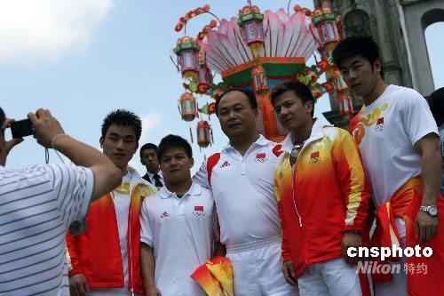 圖:北京奧運內(nèi)地金牌選手在澳門大三巴留影(2)