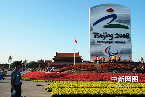 殘奧會(huì)會(huì)徽“天地人”亮相天安門(mén)廣場(chǎng)