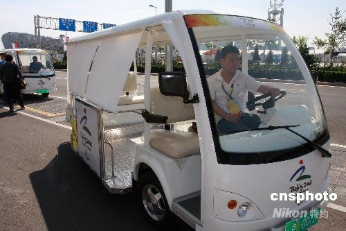 9月2日,一批新型的無障礙電瓶車北京奧運村“上崗”。據(jù)悉,從8月10日起,50輛無障礙電瓶車在奧林匹克公園公共區(qū)“上崗”,并將使用到殘奧會結(jié)束。殘奧會期間,老年人、殘疾人到“鳥巢”、“水立方”等場館觀看比賽,可不必?fù)?dān)心行動不便帶來的問題。每輛電瓶車可提供輪椅服務(wù),同時配備一名觀眾服務(wù)志愿者,全程為行動不便的觀眾提供服務(wù)。中新社發(fā) 鄭雄增 攝