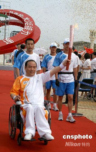 圖:北京殘奧會(huì)火炬在大連傳遞