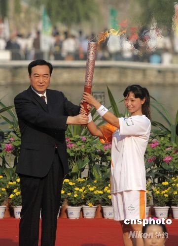 9月4日,北京2008殘奧會火炬?zhèn)鬟f“中華文明線”在洛陽舉行。中新社發(fā) 慎重 攝