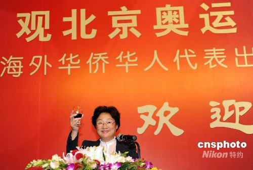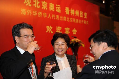 9月6日,國僑辦主任李海峰在北京向華僑華人代表敬酒。當(dāng)日,國務(wù)院僑務(wù)辦公室舉行宴會(huì),歡迎出席北京殘奧會(huì)開幕式的100位華僑華人代表。中新社發(fā) 廖攀 攝