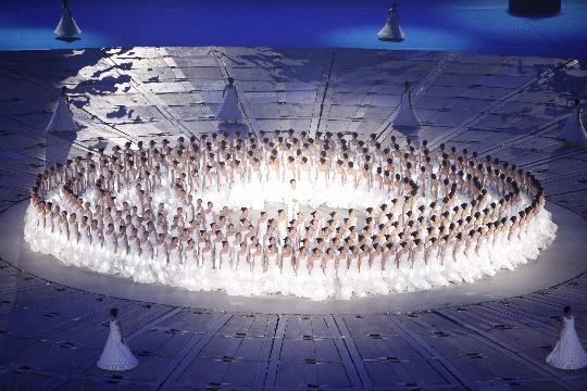 9月6日,北京2008年殘奧會開幕式在國家體育場“鳥巢”舉行。這是聾人舞蹈演員在開幕式上表演舞蹈《星星,你好》。新華社記者 廖宇杰 攝