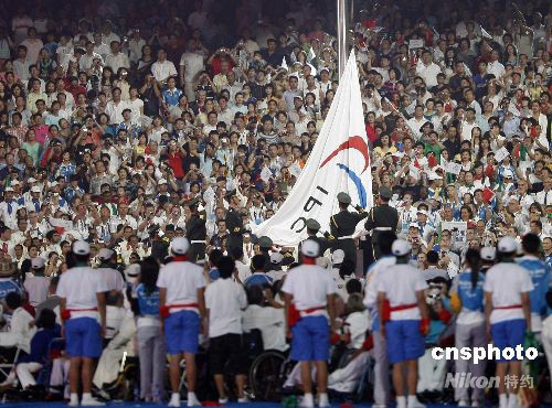 圖:殘奧會(huì)會(huì)旗在“鳥巢”升起