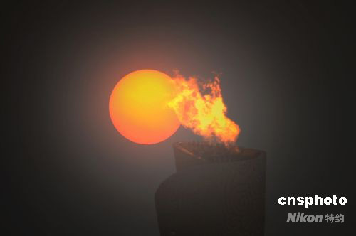 9月8日,北京,中國(guó)國(guó)家體育場(chǎng)——鳥(niǎo)巢,殘奧會(huì)的圣火在紅日的輝映下熊熊燃燒。 中新社發(fā) 廖攀 攝