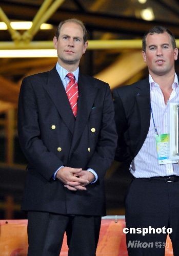 九月九日晚,英國(guó)皇室成員愛德華王子(左)到香港沙田觀看殘奧馬術(shù)項(xiàng)目比賽,為英國(guó)馬術(shù)隊(duì)員打氣,當(dāng)晚,馬術(shù)三項(xiàng)賽事中,英國(guó)隊(duì)奪得兩金一銀佳績(jī)。中新社發(fā) 鄧慶樂 攝