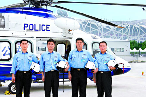 奧運(yùn)會期間,北京市公安局的四架警用直升機(jī)共飛行40架次,主要在奧運(yùn)場館的上空執(zhí)行巡邏監(jiān)控和警戒、支援等任務(wù)。