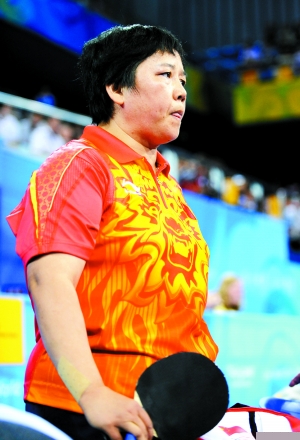 昨日,乒乓球女子單打F8半決賽中,51歲的張小玲輸給瑞典選手亞伯拉罕松后略顯沮喪。