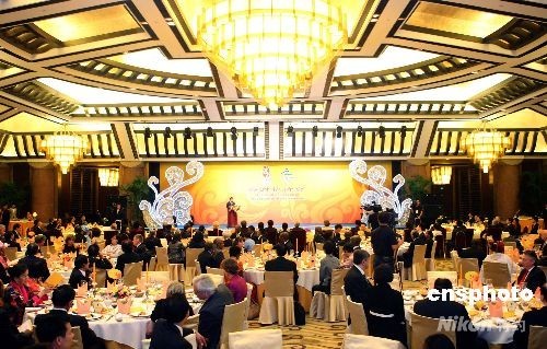 9月19日晚,中國外交部與北京奧組委在北京釣魚臺國賓館舉行答謝宴會,邀請各國駐華使節(jié)和國際組織駐華代表夫婦出席,感謝國際社會對北京奧運會和殘奧會工作的支持。中新社發(fā) 廖文靜 攝