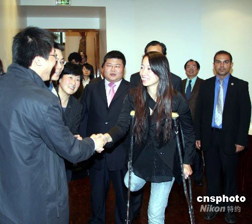 十九日晚,曾與中國奧運(yùn)火炬手金晶結(jié)下“戰(zhàn)斗友誼”的旅法華僑華人和中國留學(xué)生在巴黎舉行歡迎會(huì),以掌聲和親情迎接金晶重返巴黎,訪問法國。圖為金晶與部分一同參與北京奧運(yùn)火炬巴黎傳遞的華人與留學(xué)生火炬手、護(hù)衛(wèi)手等“老戰(zhàn)友”喜重逢。中新社發(fā) 吳衛(wèi)中 攝