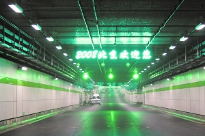 地下通道內(nèi)平均每兩三百米就有一個出入口,總計有25個之多。密集的出入口與奧林匹克公園中心區(qū)周邊的北四環(huán)路、成府路、大屯路、科薈路、北辰路等近10條市政道路相通。其中,與地面道路相連的有6個入口和7個出口,與大屯路隧道及成府路隧道相連的有6個入口和6個出口。目前這些地面道路的交通流量都挺大,高峰時段行車緩慢。但在地下,可以一路綠燈地在各條市政道路之間完成快速切換,讓司機(jī)的心情像車速一樣暢快。