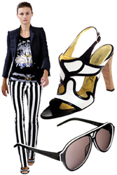 航海風(fēng)貌的熱潮繼去年一直延續(xù)至今,條紋圖案依舊可以成為選擇的目標,只是本季的設(shè)計為航海主題略添了幾分女性柔美的元素。銀色絞繩式高跟涼鞋;金色船錨和紅珊瑚串成的項鏈;玫瑰紅與藍色條紋拼合而成的tubetop式的連衣裙裙擺都鑲著亮鉆。這一系列元素都為一向中性化的航海設(shè)計增添了女性主義色彩。牛仔布和斜紋布依舊熱門,Diesel的白色牛仔褲和襯衫、Trovata的綠色白邊T恤和寬松的闊口褲都是時尚達人們的寵兒。