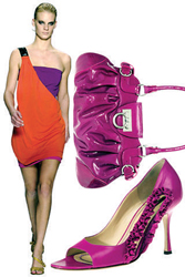 回顧上世紀(jì)80年代的時(shí)尚潮流,自由、開(kāi)放、眼花繚亂、略帶點(diǎn)頹廢,最明顯的標(biāo)志莫過(guò)于色彩的沖撞。那個(gè)年代幾乎將所有的色彩都聚在了一起,對(duì)比色、跳躍色、熒光色等?傊,那些純度偏高的色彩總是能給人帶來(lái)視覺(jué)刺激的愉悅和個(gè)人感情釋放的快感。于是,有了Isabella Fiore的“Love”綠色挎包;L.A.M.B的橙色和綠色拼合運(yùn)動(dòng)茄克;Marc Jacob的黃色露趾平底鞋;Nike的多色相拼運(yùn)動(dòng)連衣裙;Sonia Rykiel的黑白對(duì)比色視幻大手鐲……